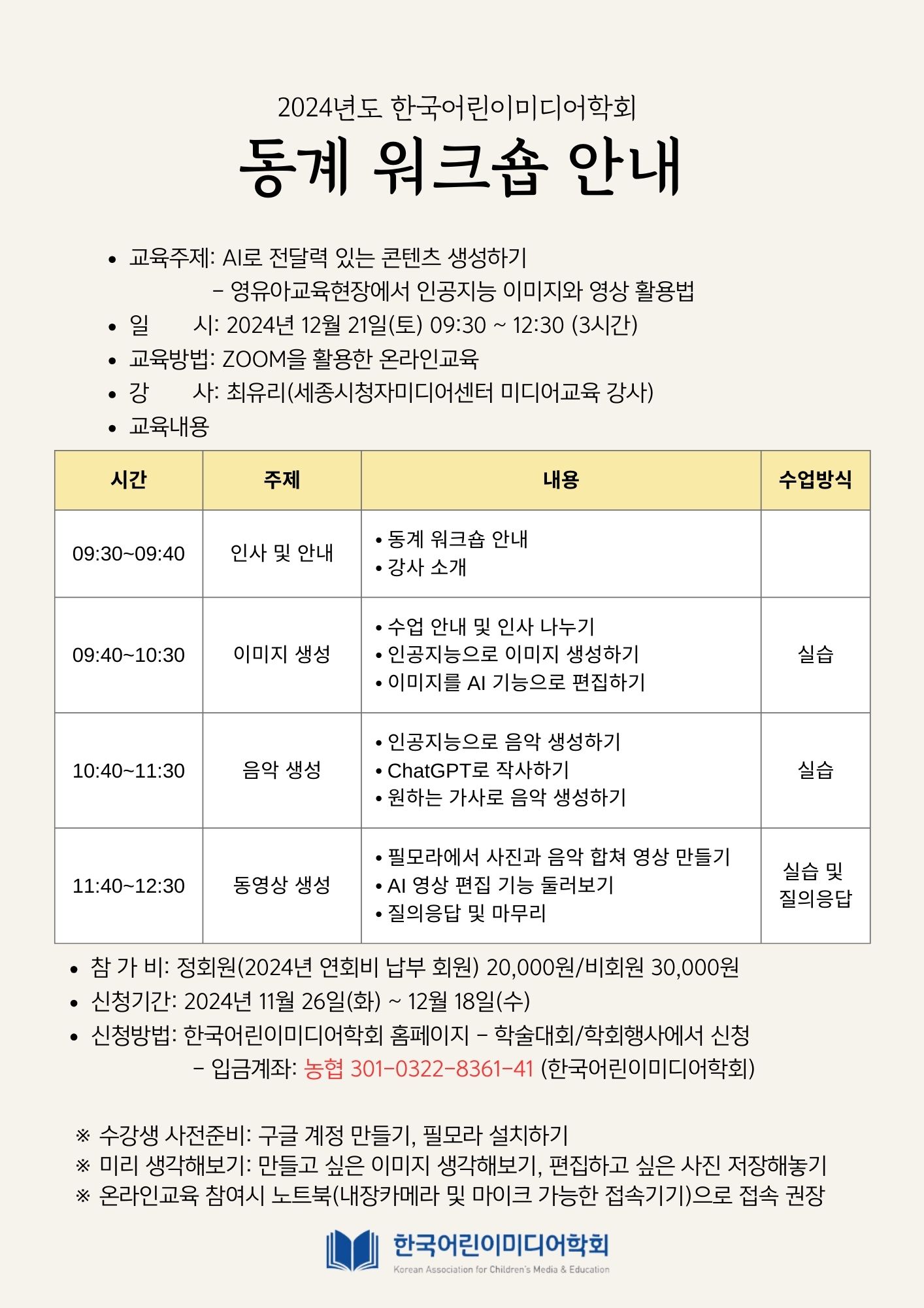2024년 한국어린이미디어학회 동계 워크숍 사전등록 안내