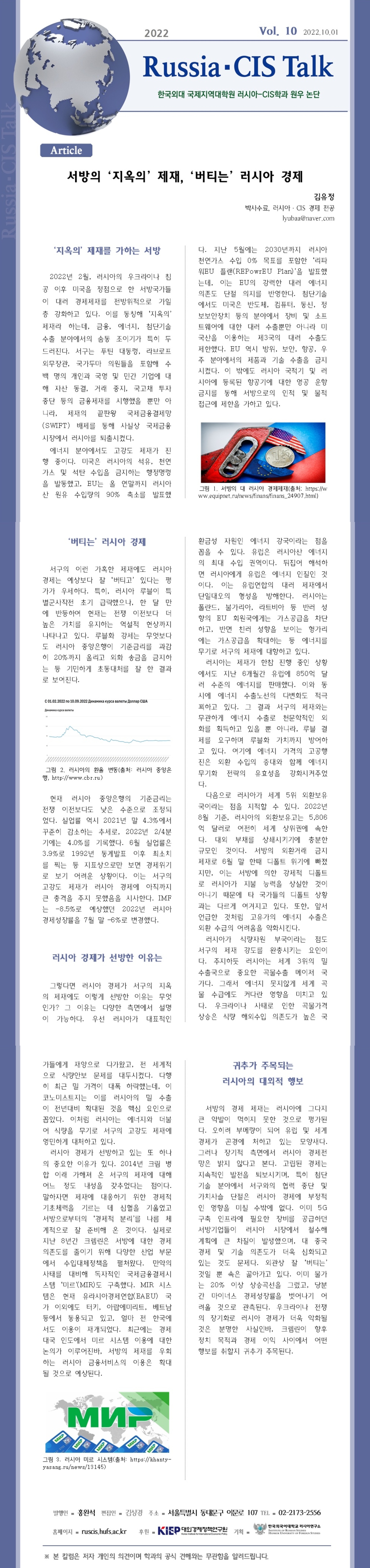 Russia-CIS Talk 2022 vol. 10: 서방의 '지옥의' 제재, '버티는' 러시아 경제