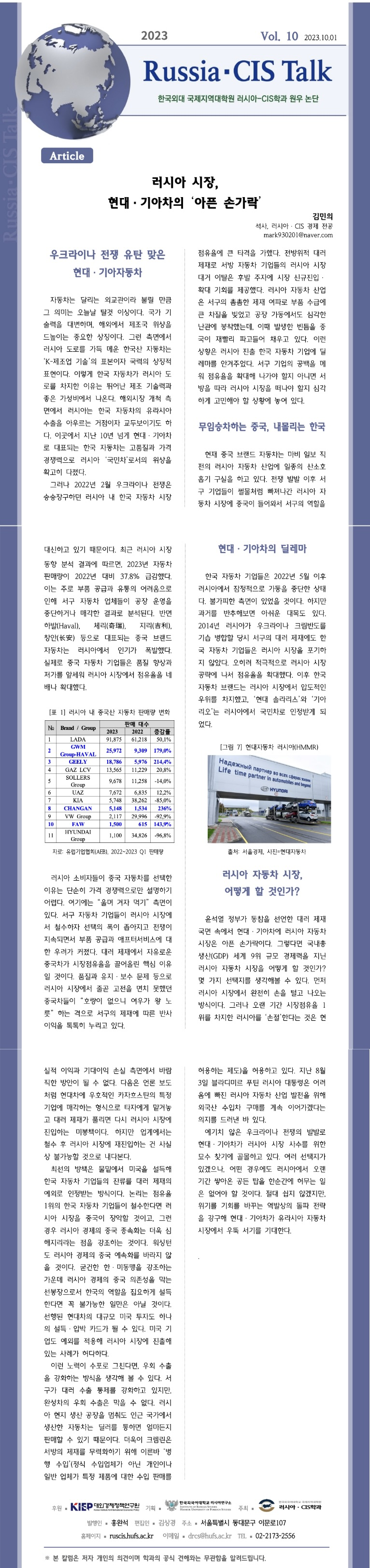 Russia-CIS Talk 2023 vol. 10: 러시아 시장 현대·기아차의 '아픈 손가락'