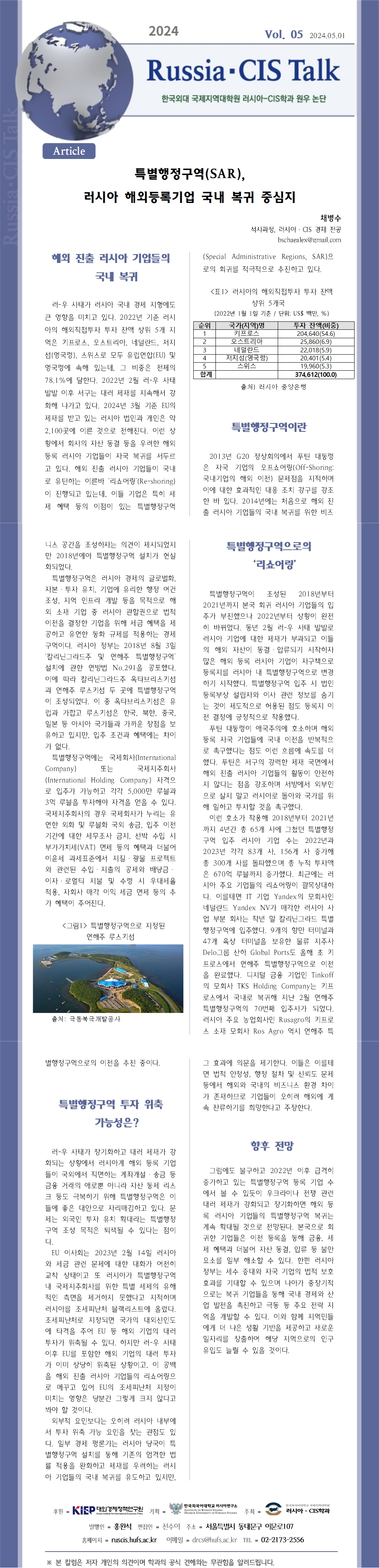 Russia-CIS Talk 2024 vol.05: 특별행정구역(SAR), 러시아 해외등록기업 국내 복귀 중심