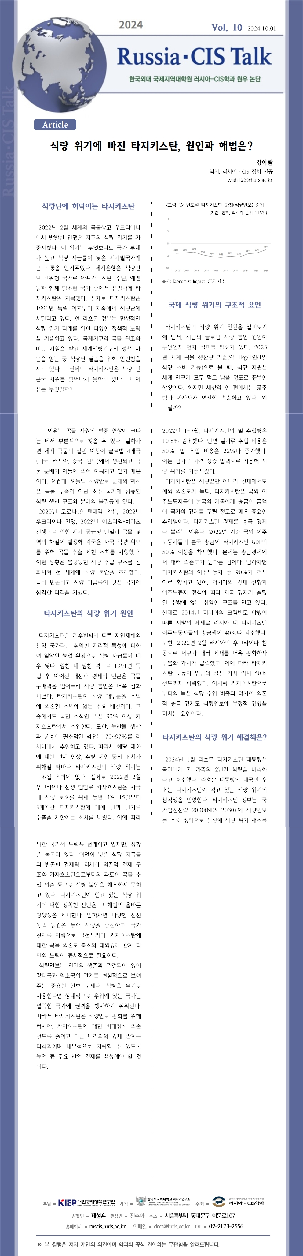 Russia-CIS Talk 2024 vol.10: 식량 위기에 빠진 타지키스탄, 원인과 해법은?