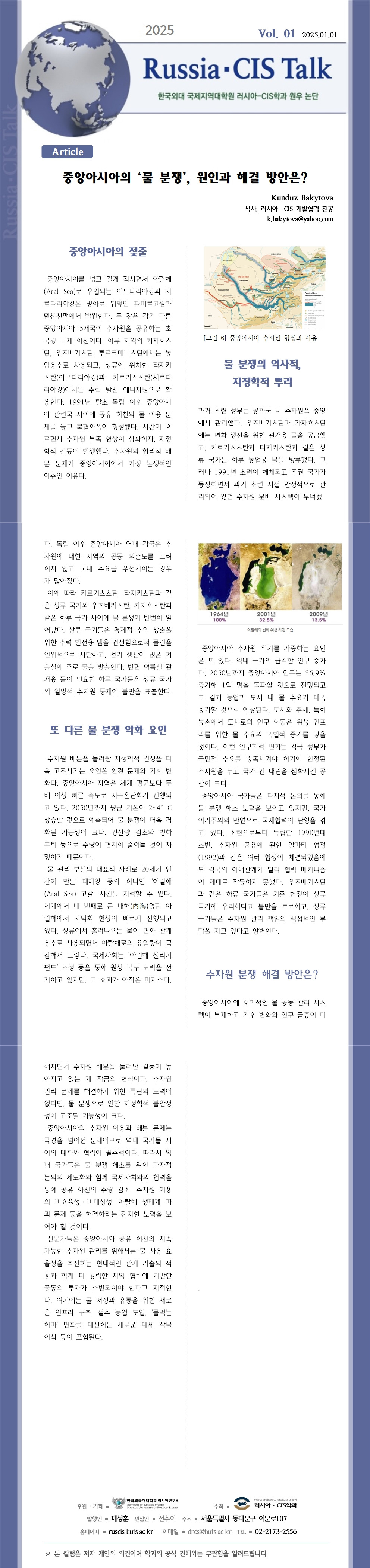 Russia-CIS Talk 2025 vol.1: 중앙아시아의 '물 분쟁', 원인과 해결 방안은?