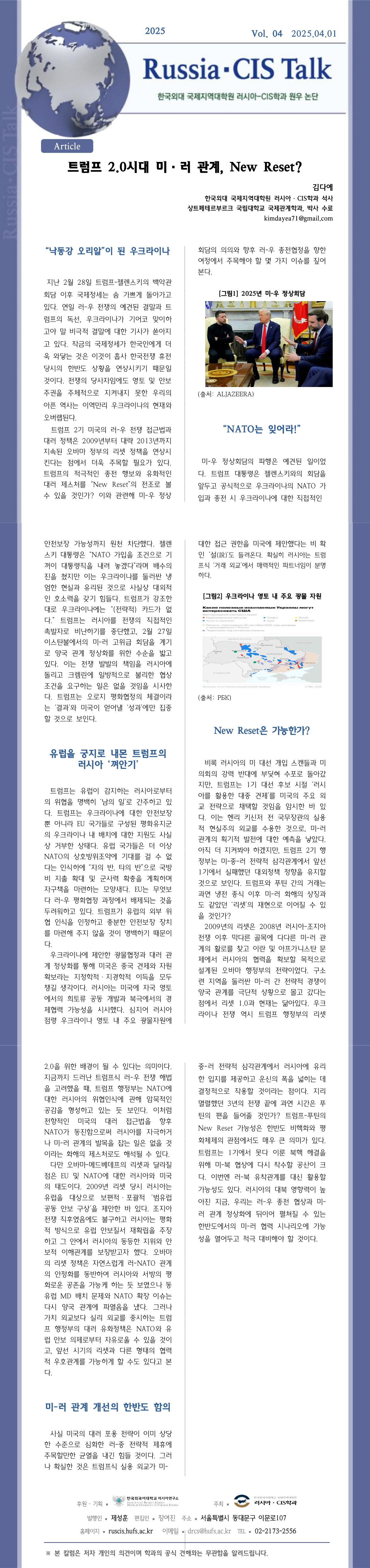 Russia-CIS Talk 2025 vol.4: 트럼프 2.0시대 미·러 관계, New Reset?