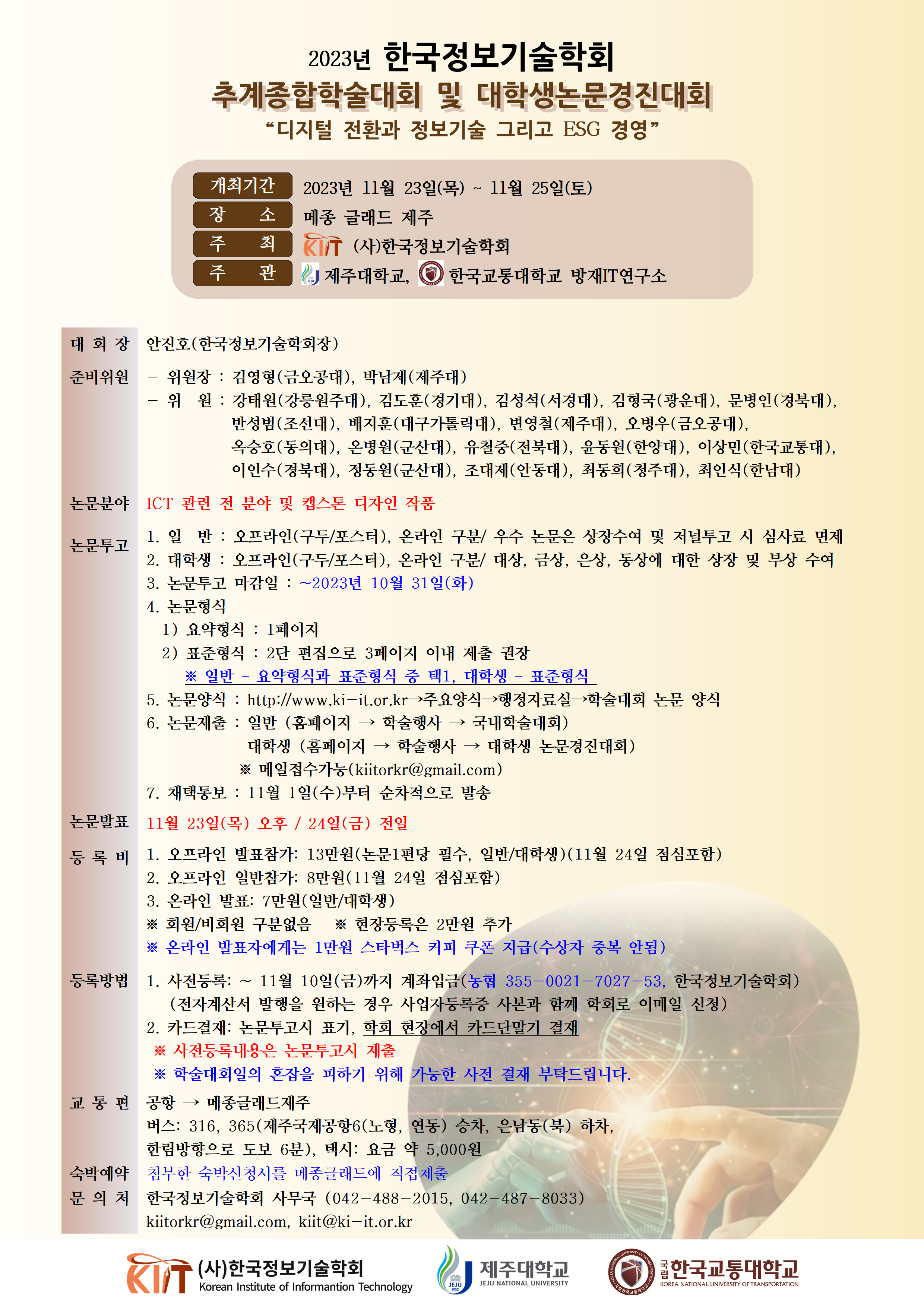 2023년 한국정보기술학회 추계종합학술대회 및 대학생논문경진대회 안내