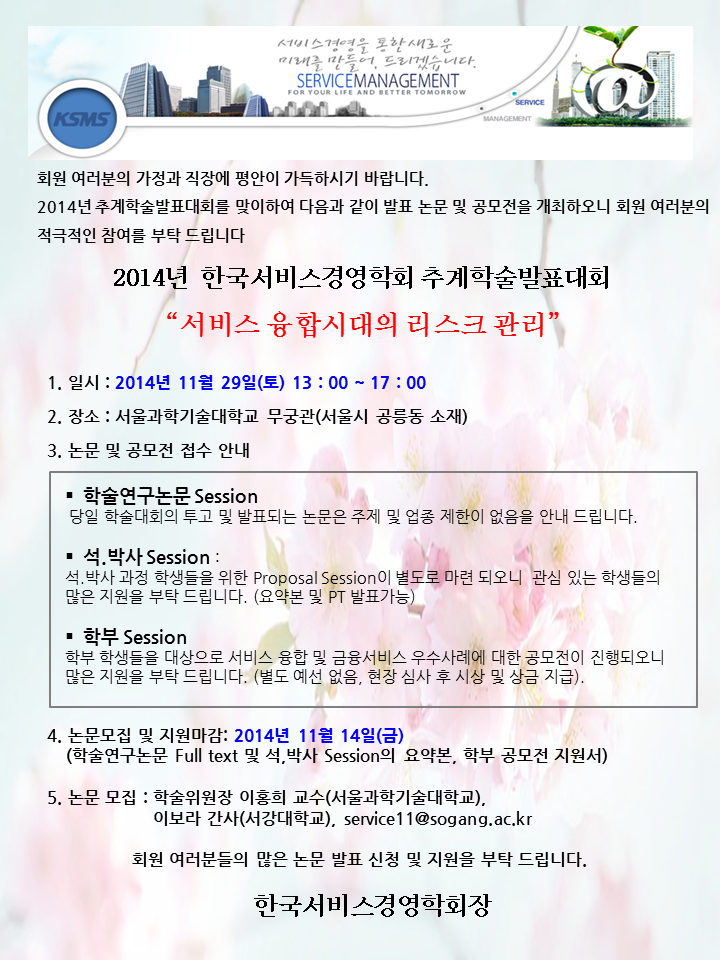2014 한국서비스경영학회 춘계학술발표대회 대학생 공모전 안내_마감일 수정