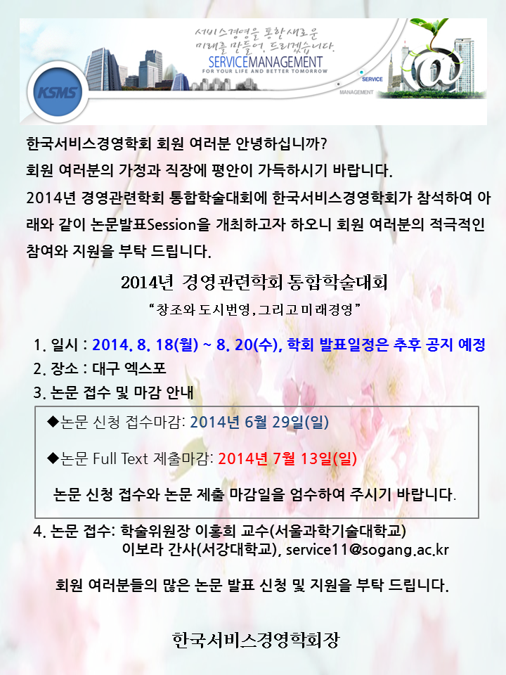 2014 경영관련학회 통합학술대회 개최 및 논문 모집 안내