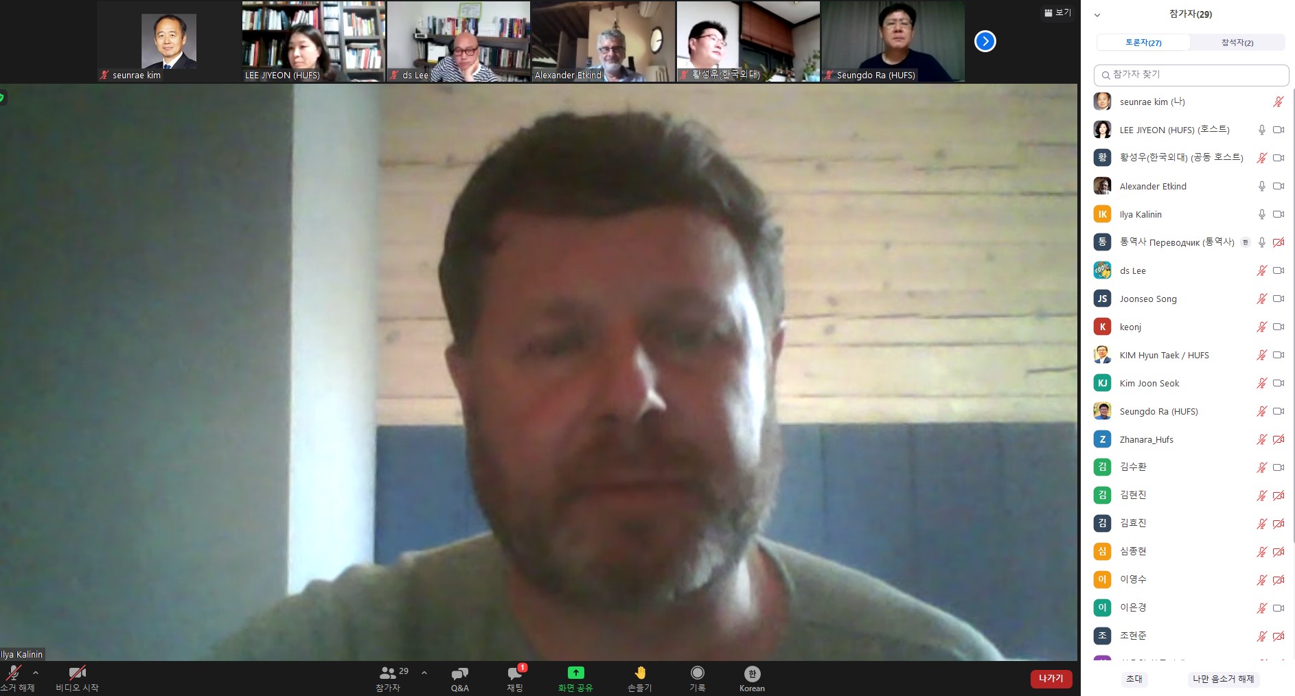 한국외대 러시아연구소는 국제지역대학원 러시아학과와 함께 온택트 시대 변화된 미디어 환경에 발맞추어 연구소의 풍부한 국제적 네트워크를 활용한 해외석학 온라인 강좌
