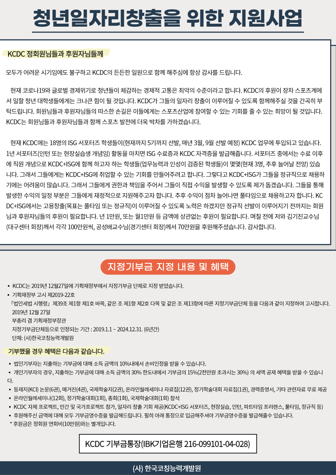 청년일자리창출을 위한 지원사업(기부금) 안내