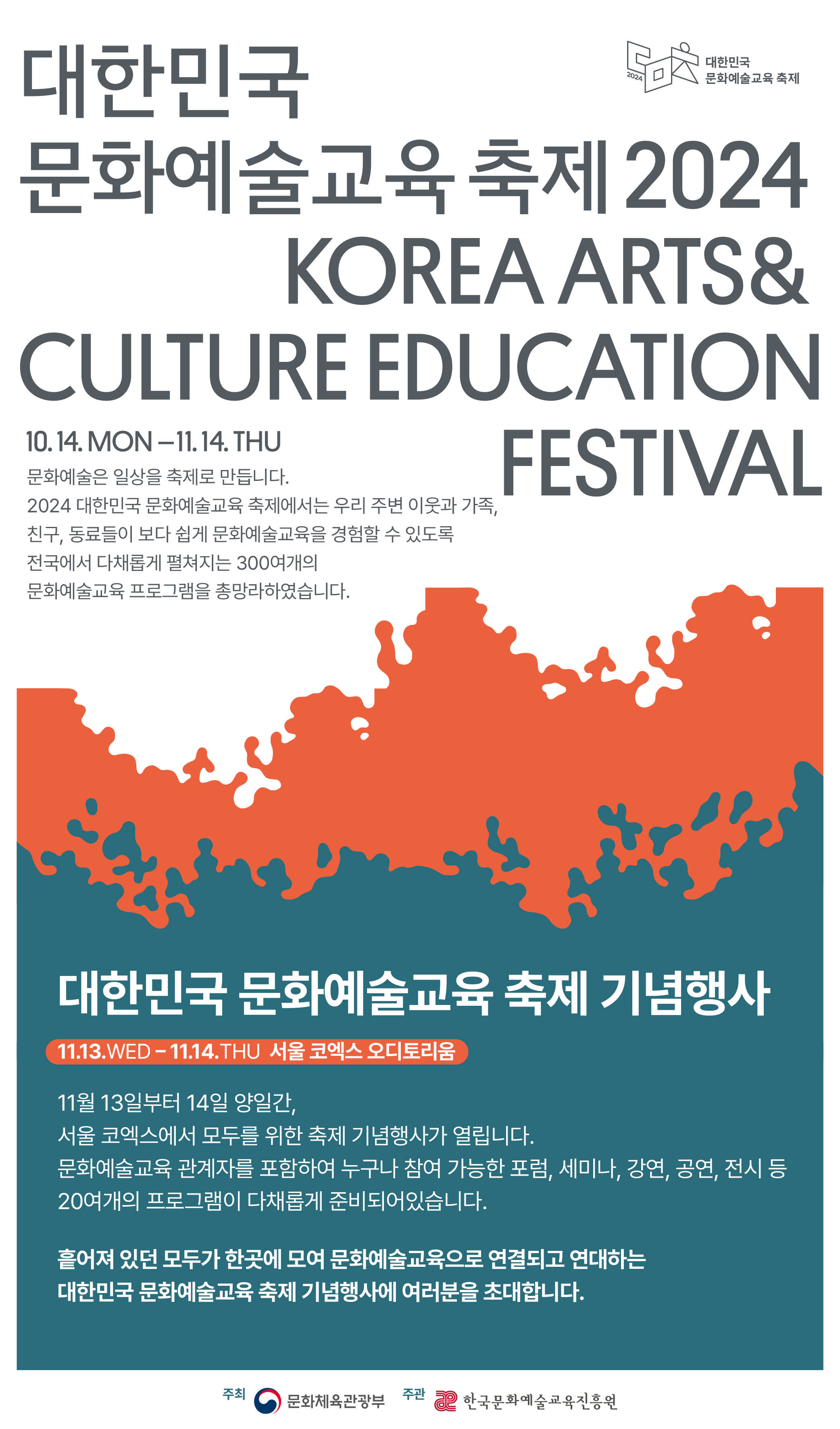 대한민국 문화예술교육축제 2024 행사의 일환으로 진행되는 이번 포럼의 개요는 아래와 같습니다.