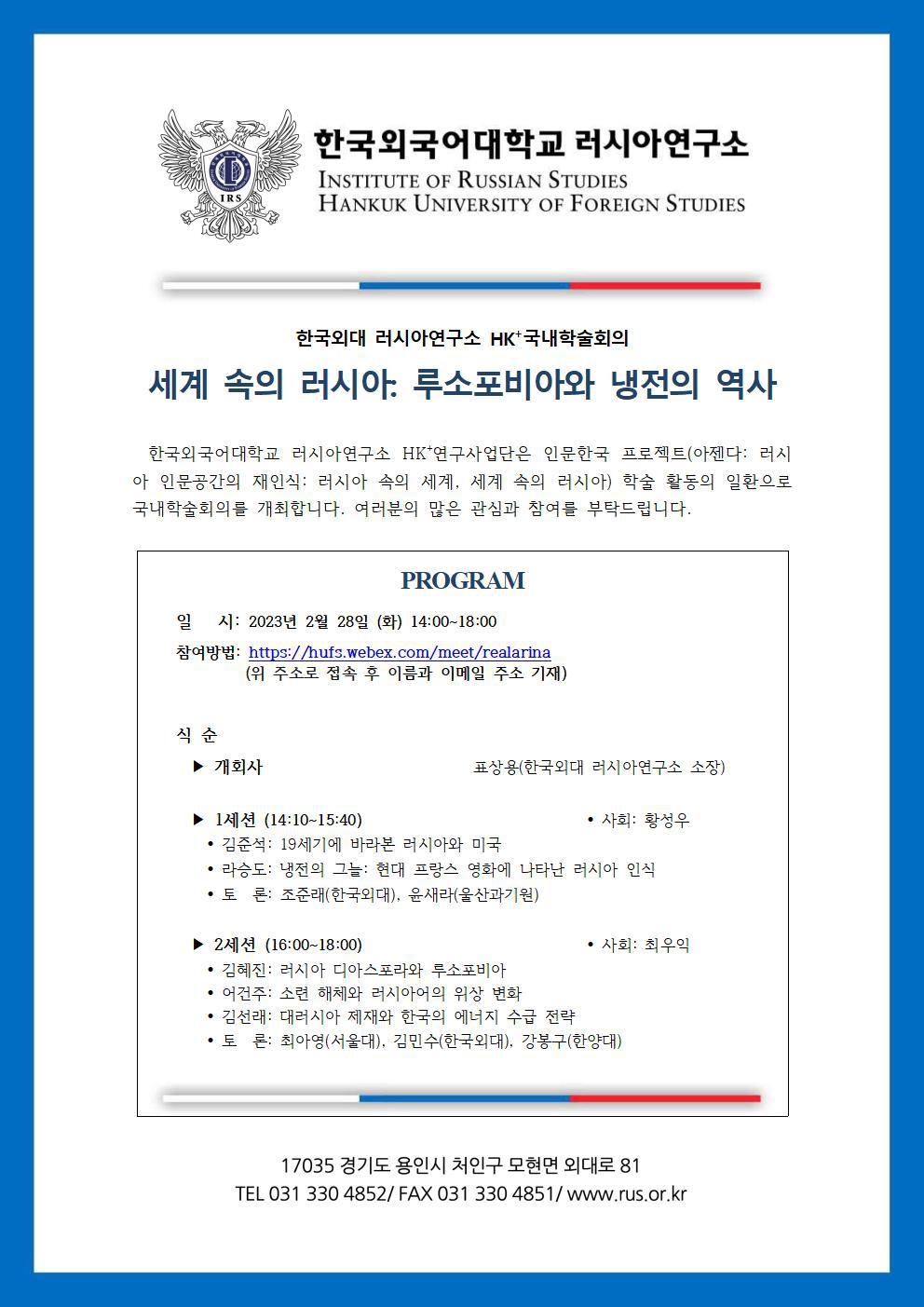 [국내학술회의 개최 안내] 세계 속의 러시아: 루소포비아와 냉전의 역사