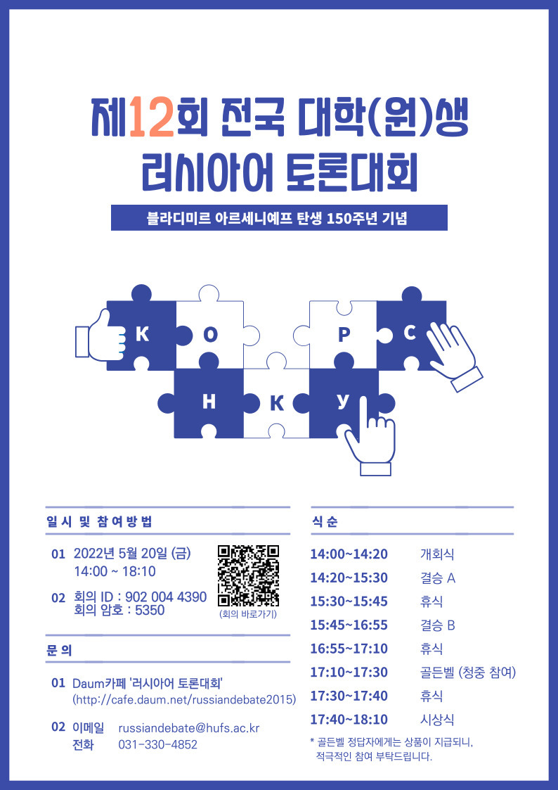 제12회 전국 대학(원)생 러시아어 토론대회 결승 안내
