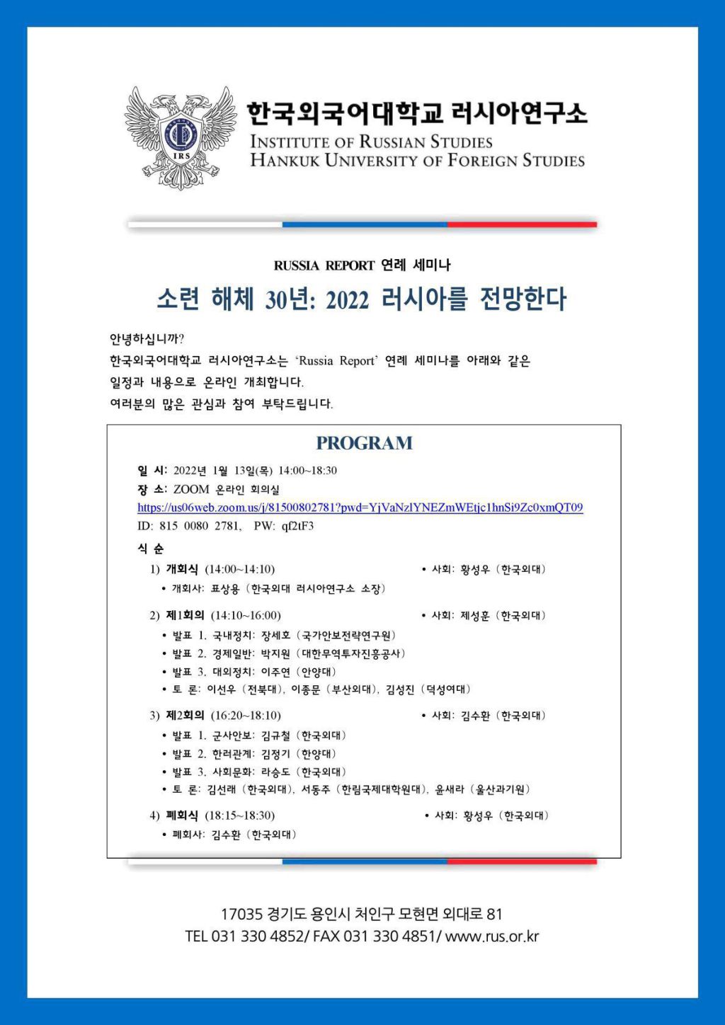 [Russia Report 연례 세미나] 소련 해체 30년: 2022 러시아를 전망한다