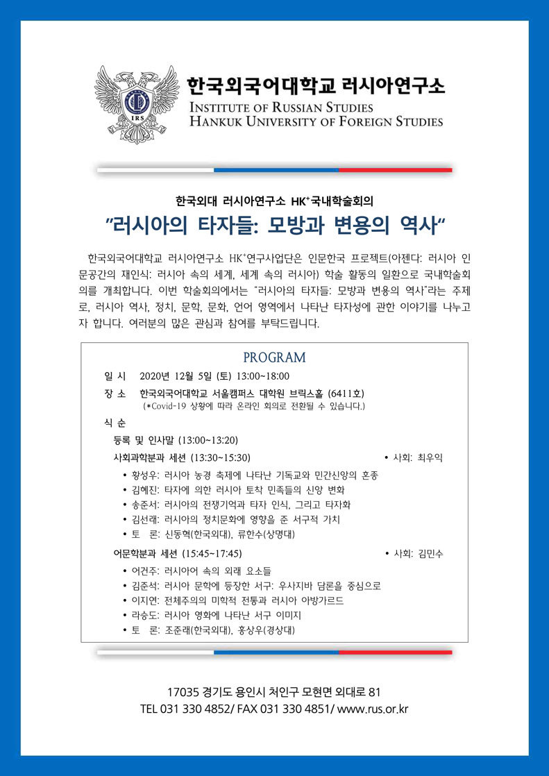한국외대 러시아연구소 HK+ 국내학술회의 안내