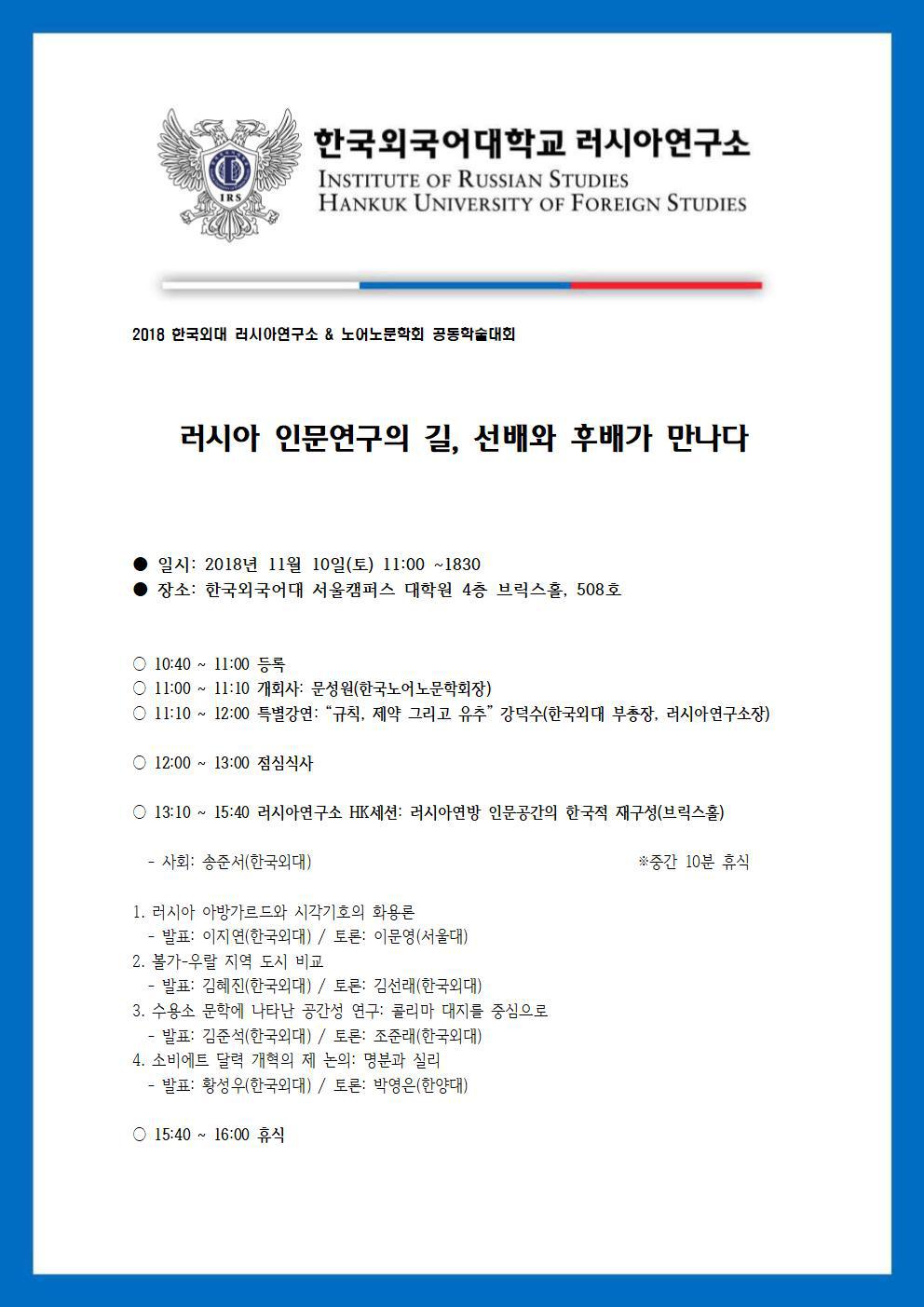 2018 한국외대 러시아연구소 & 노어노문학회 공동학술대회