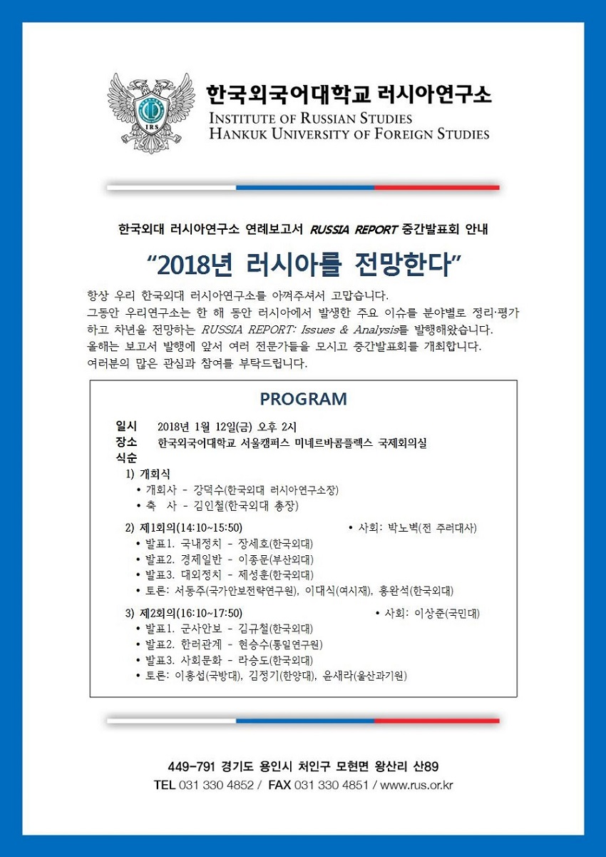 RUSSIA REPORT 중간발표회: "2018년 러시아를 전망한다"