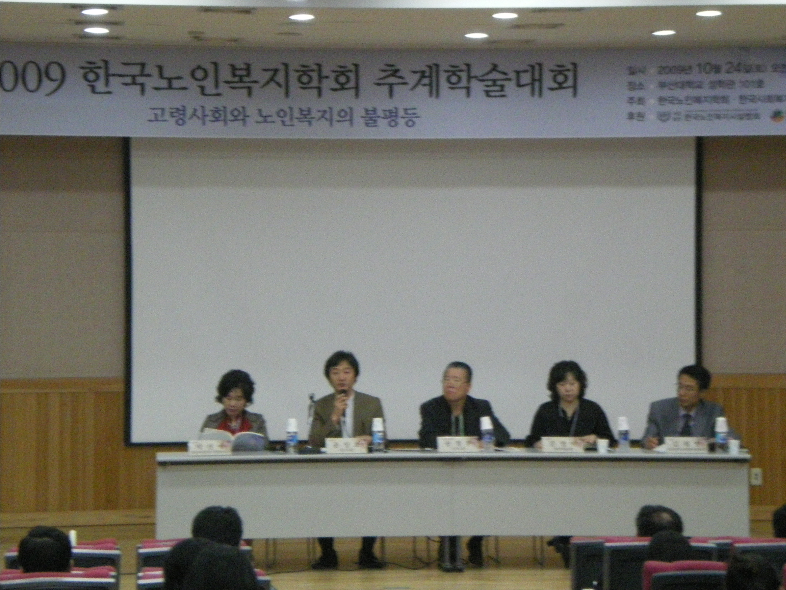 2009년 추계학술대회를 ‘고령사회와 노인복지의 불평등’이라는 주제를 가지고 부산대학교에서 200여명이 참석한 가운데 성공적으로 개최하였다. 성별간 노인복지의 불평등(석재은 교수, 한림대), 사회계층간 노인복지의 불평등(윤성호 교수, 동서대), 지역간 노인복지의 불평등(조성희 교수, 순천향대)에 대한 훌륭한 발표가 있었으며 주제별로 토론이 진행되었다. 발표와 토론 과정에서 학문적으로 크게 기여할 수 있는 연구의 방향성이 제시되었으며, 국가의 노인복지정책의 발전에 공헌할 수 있는 대책들이 논의되었다.