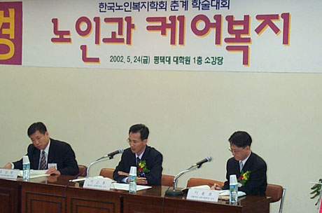 2002년 5월 24일 평택대학교 대학원 소강당에서 학회 회원과 옵서버 200여명이 참석한 가운데 <노인과 케어복지>라는 대주제로 열린 춘계학술대회에서 <노인케어복지사업의 전망과 과제>라는 주제로 발표와 토론이 진행되고 있다. / 촬영자 : 옥재은