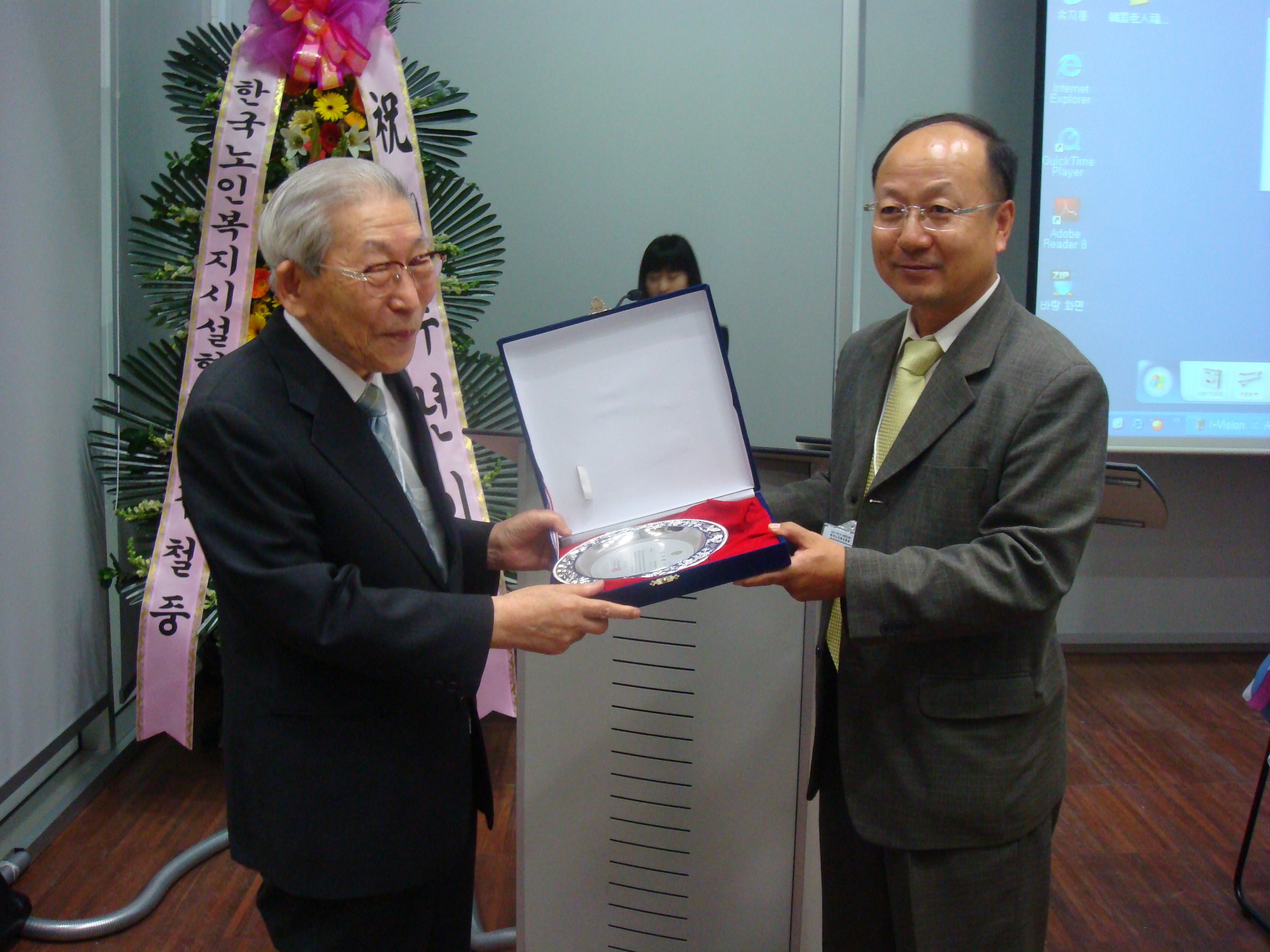 2008년 10월 25일(토) 학회 창립 10주년 기념식에서 박재간 전 한국노인문제연구소 소장께 감사패를 드렸다.