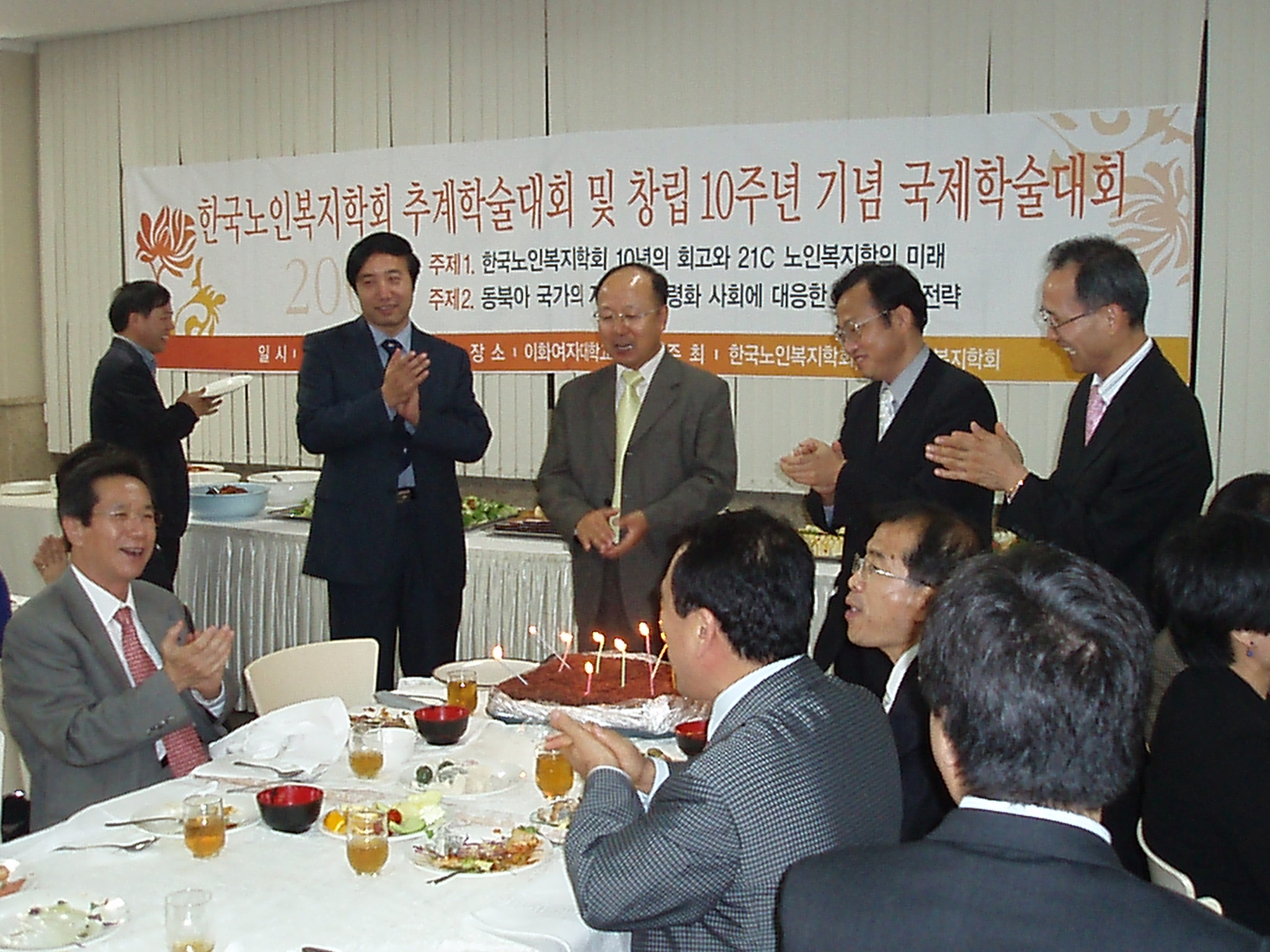 2008년 10월 25일(토) 이화여자대학교 2008년도 추계학술대회 및 학회 창립 10주년 기념 국제학술대회를 마치고 10주년 기념 만찬에서 현외성 학회장께서 감사의 인사하였다.