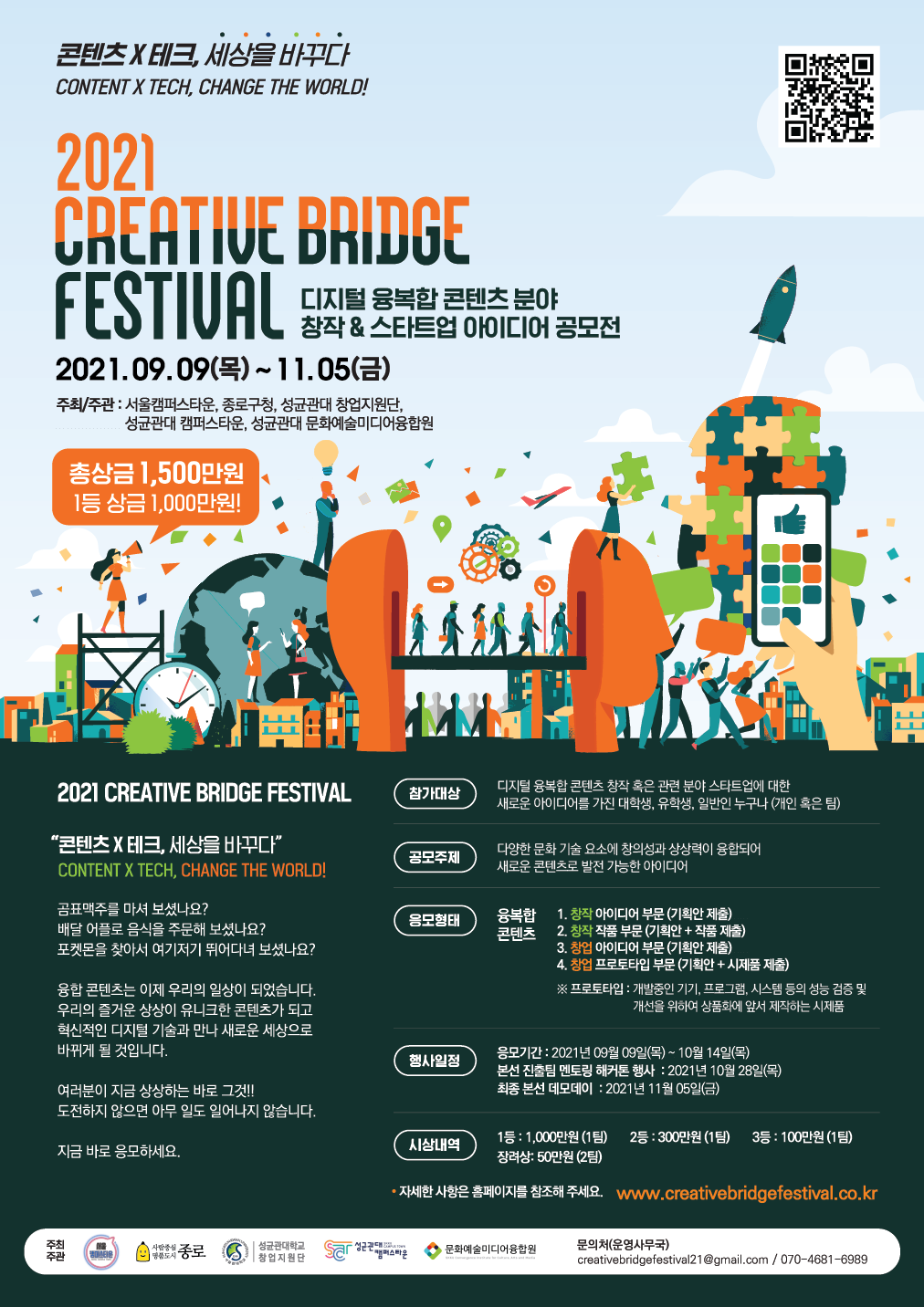 [홍보] 2021 Creative Bridge Festival 융복합 콘텐츠 창작/창업 공모전 응모 접수(성균관대)