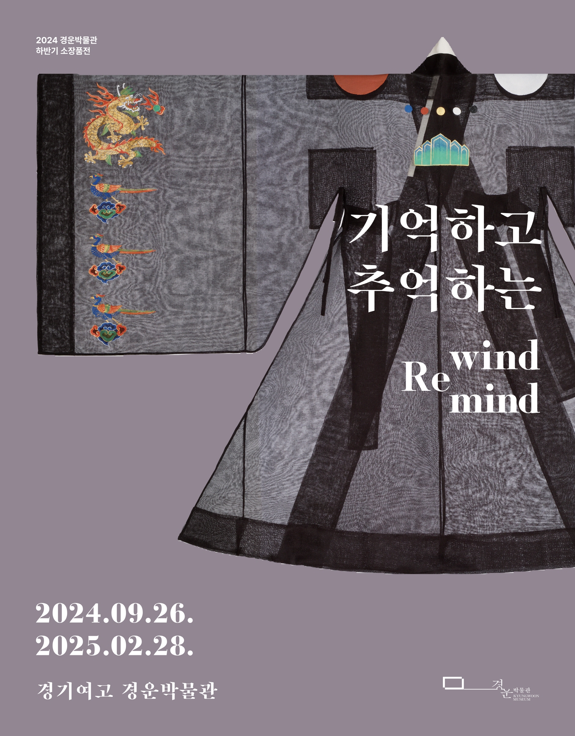 □ 경운박물관은 근대 복식 전문박물관으로 경기여고 동문의 자원봉사와 후원을 통해 그간 41회의 기획전시와 다양한 교육프로그램을 운영해 왔다. 경기여고 동문과 일반인의 유물 기증에 대한 감사의 뜻으로 4회의 기증전도 개최하였는데, 지난 20여 년간의 전시를 리와인드(Rewind)·리마인드(Remind) 하여 그동안 선보였던 소장품들 중 110여 점을 3개 주제로 나누어 기획전시실에 전시된다. 전시 구성은 1부 ‘관람객이 사랑한 기증품’, 2부 ‘특별전을 빛냈던 재현품’, 3부 ‘박물관이 복원한 출토복식’이다.