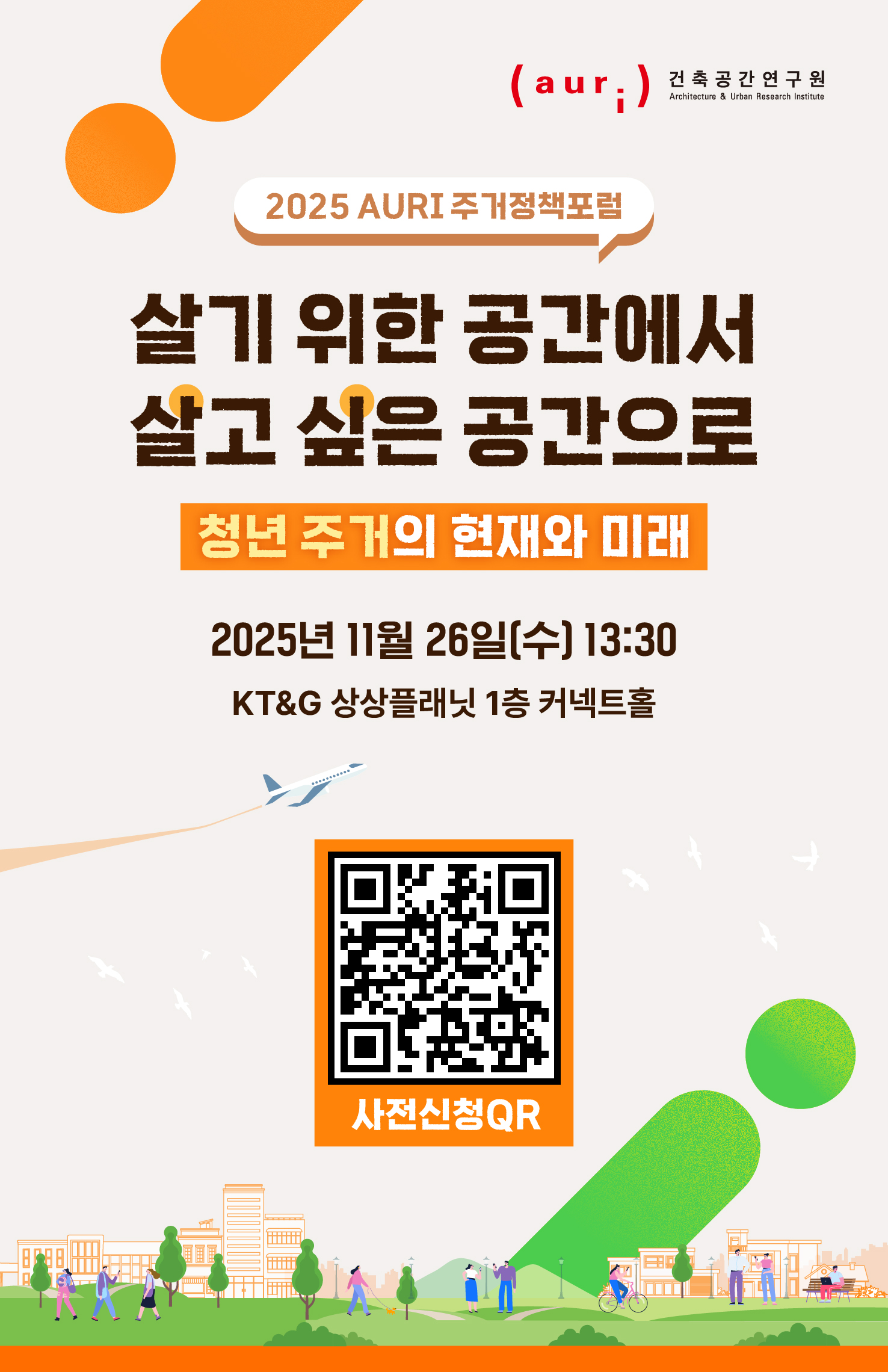 건축공간연구원에서는 청년층의 주거 여건을 진단하고, 앞으로의 주거 정책 방향을 모색하기 위해 '2025 AURI 주거정책포럼'을 아래와 같이 개최할 예정입니다.