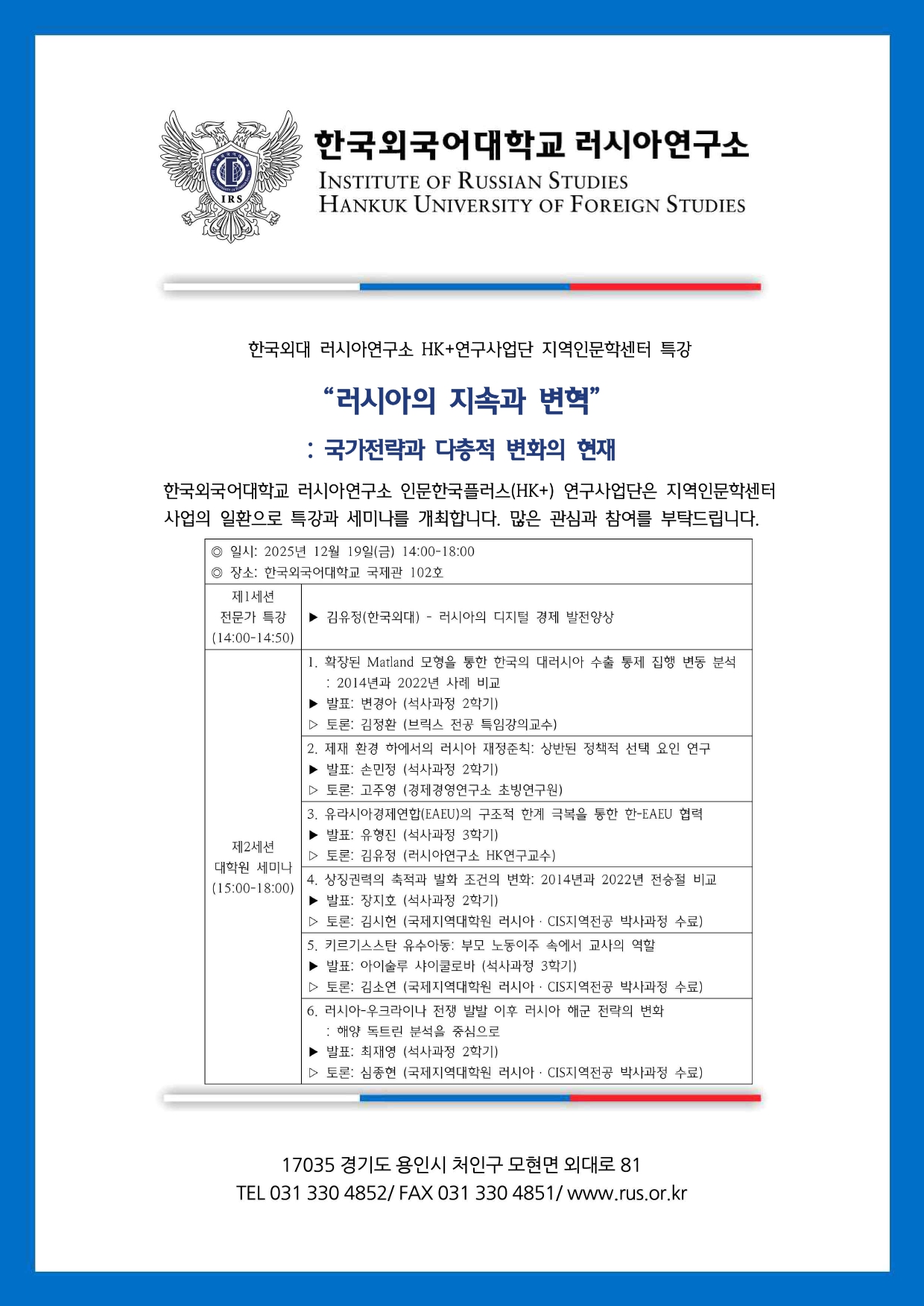지역인문학센터 특강: "러시아의 지속과 변혁: 국가전략과 다층적 변화의 현재"