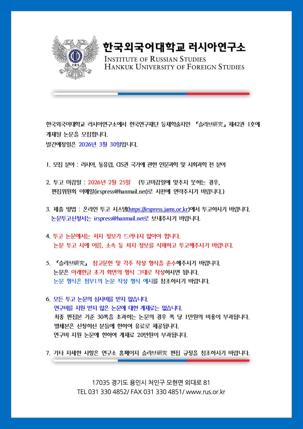 한국외국어대학교 러시아연구소 HK+사업단 연구보조원 채용 공고
