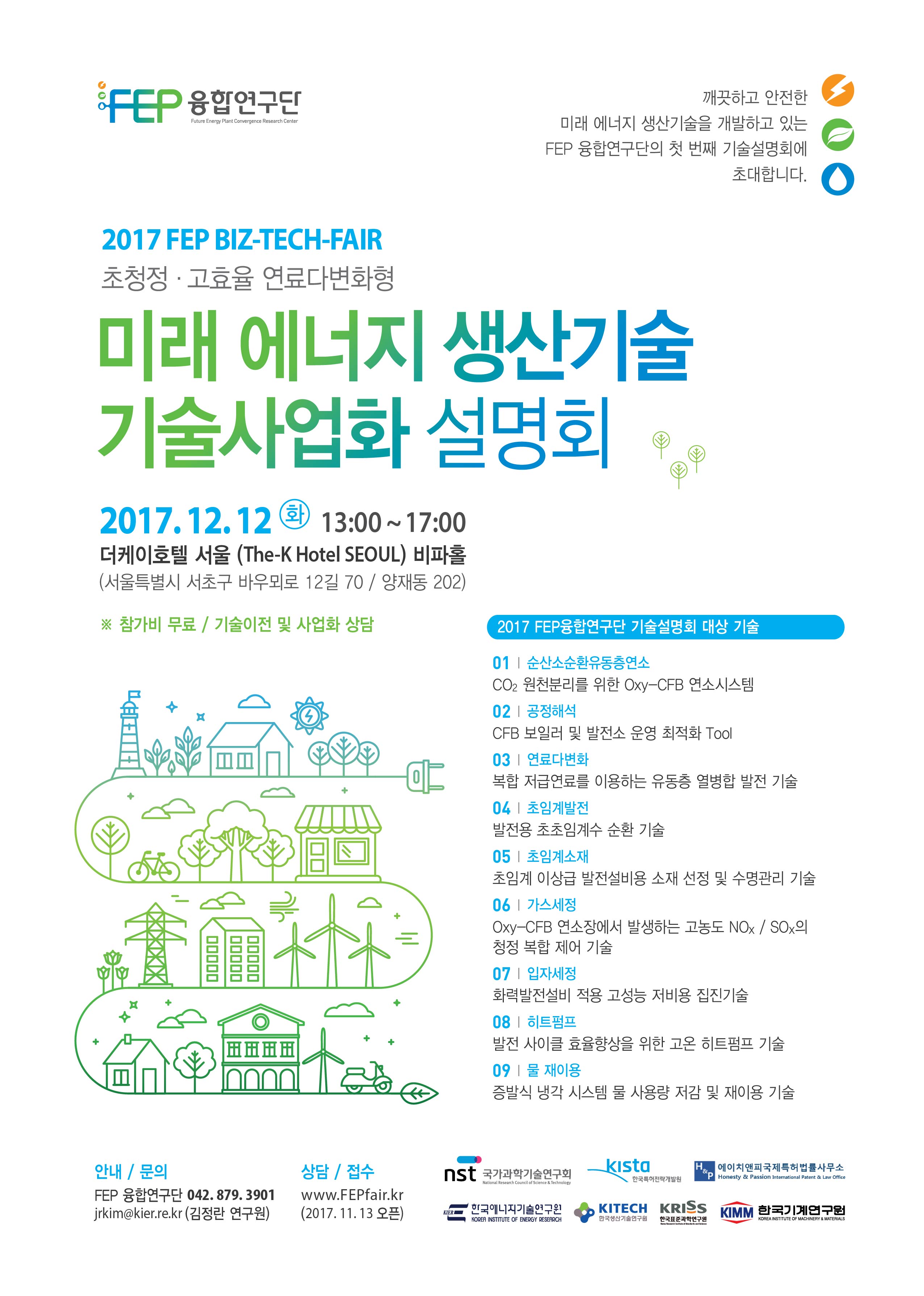 FEP융합연구단에서 초청정 · 고효율 연료다변화형 미래에너지 생산기술 기술사업화 설명회를