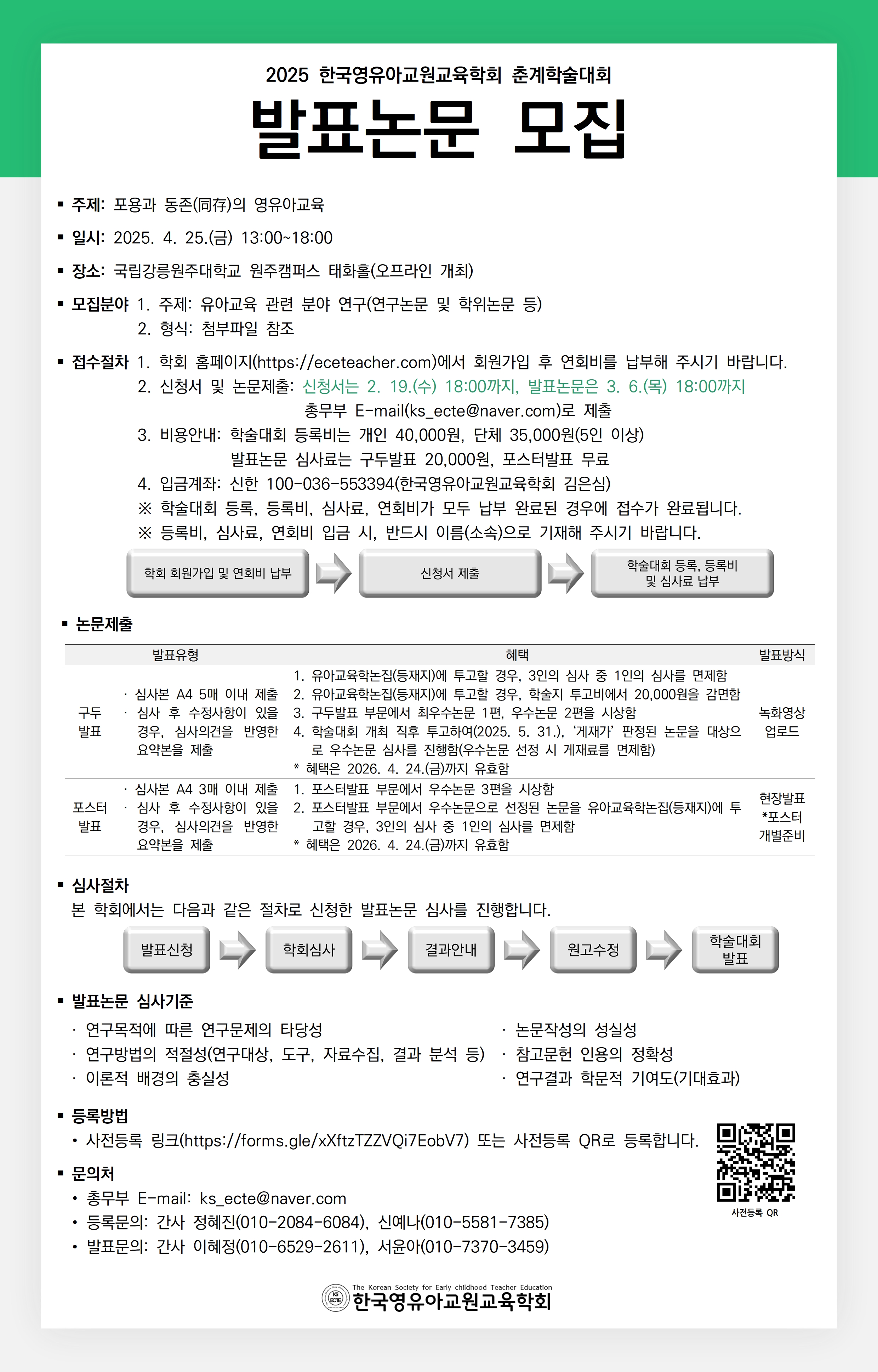[한국영유아교원교육학회] 2025 춘계학술대회 원고모집 및 일정안내
