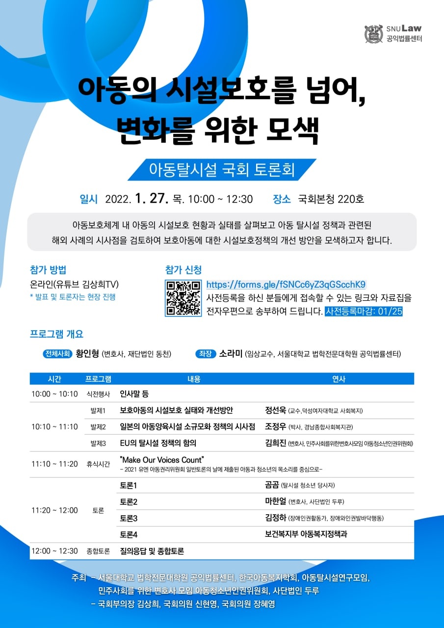 서울대학교 법학전문대학원 공익법률센터, 한국아동복지학회, 아동탈시설연구모임, 민주사회를 위한 변호사 모임, 아동청소년인권위원회, 사단법인 두루