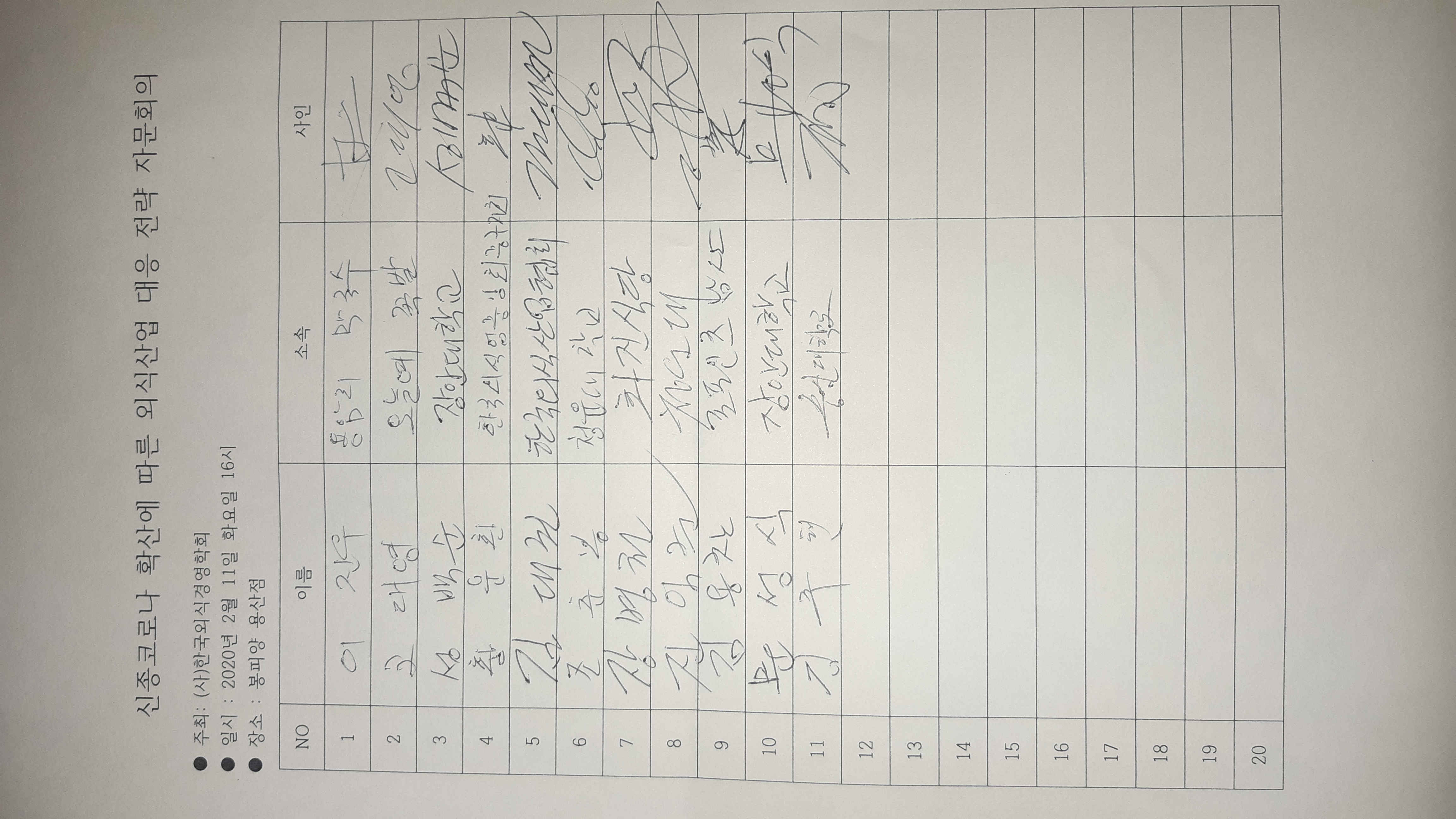 (사)한국외식경영학회에서는 2020년 2월 11일(화요일), 봉피양 용산점에서 "신종코로나 확산에 따른 외식산업 대응 전략 자문회의"를 개최하였습니다.