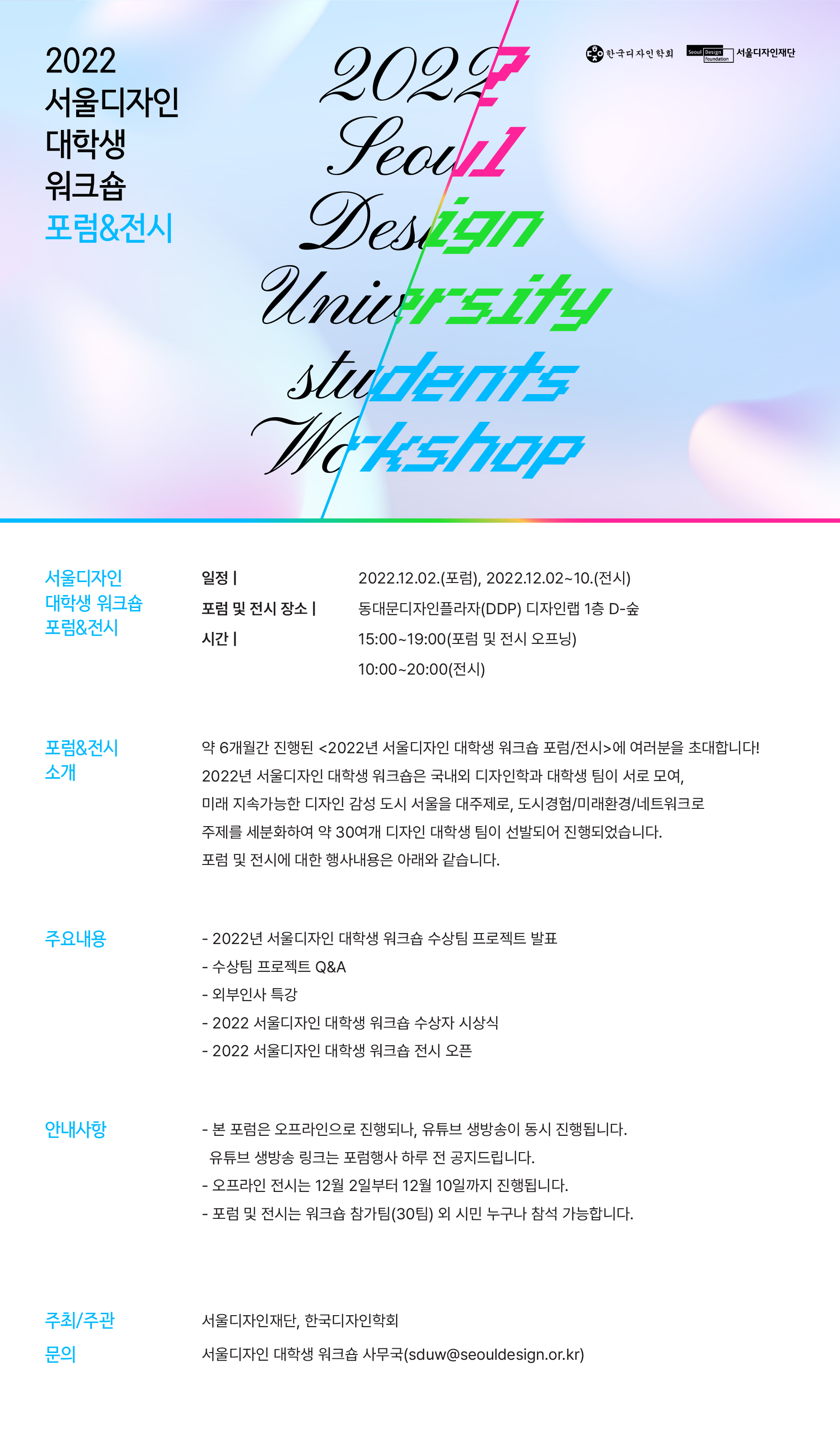 2022 서울디자인 대학생 워크숍 포럼&전시 (YouTube 링크)
