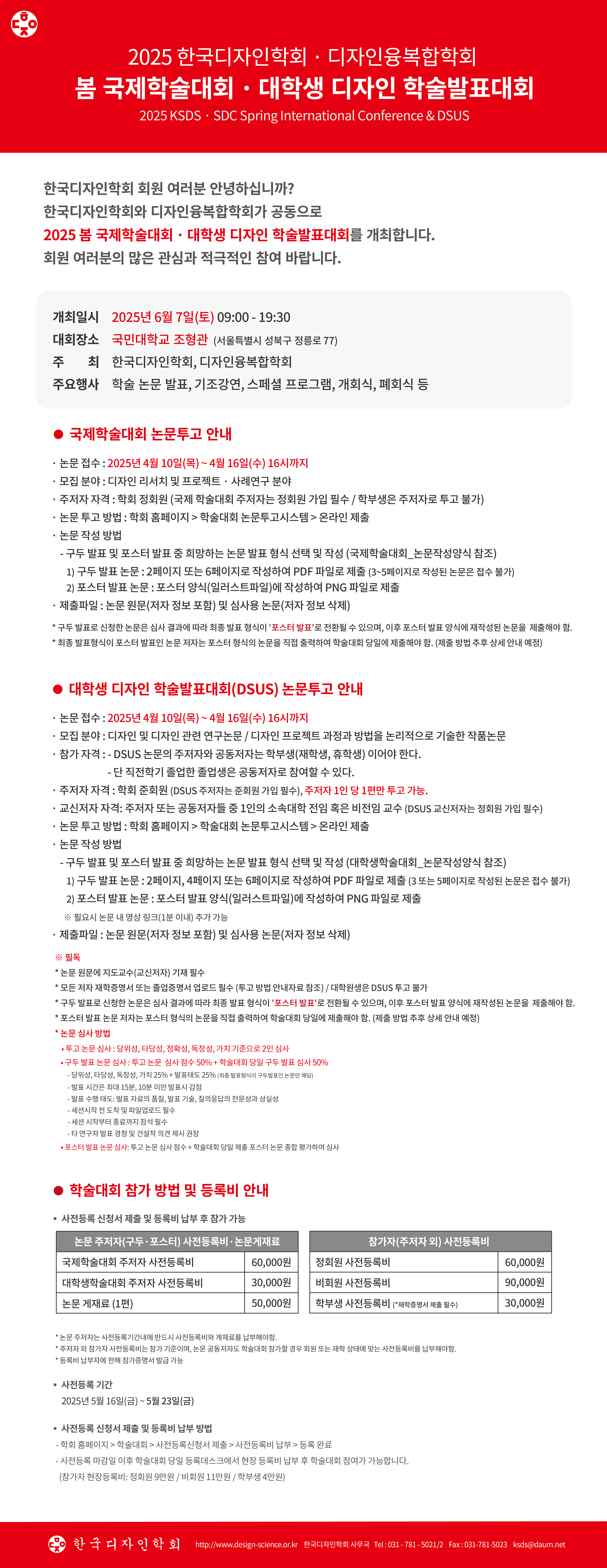 2025 한국디자인학회 봄 국제학술대회 · 대학생 디자인 학술발표대회 논문 접수 마감일 연장 안내(~4/21)