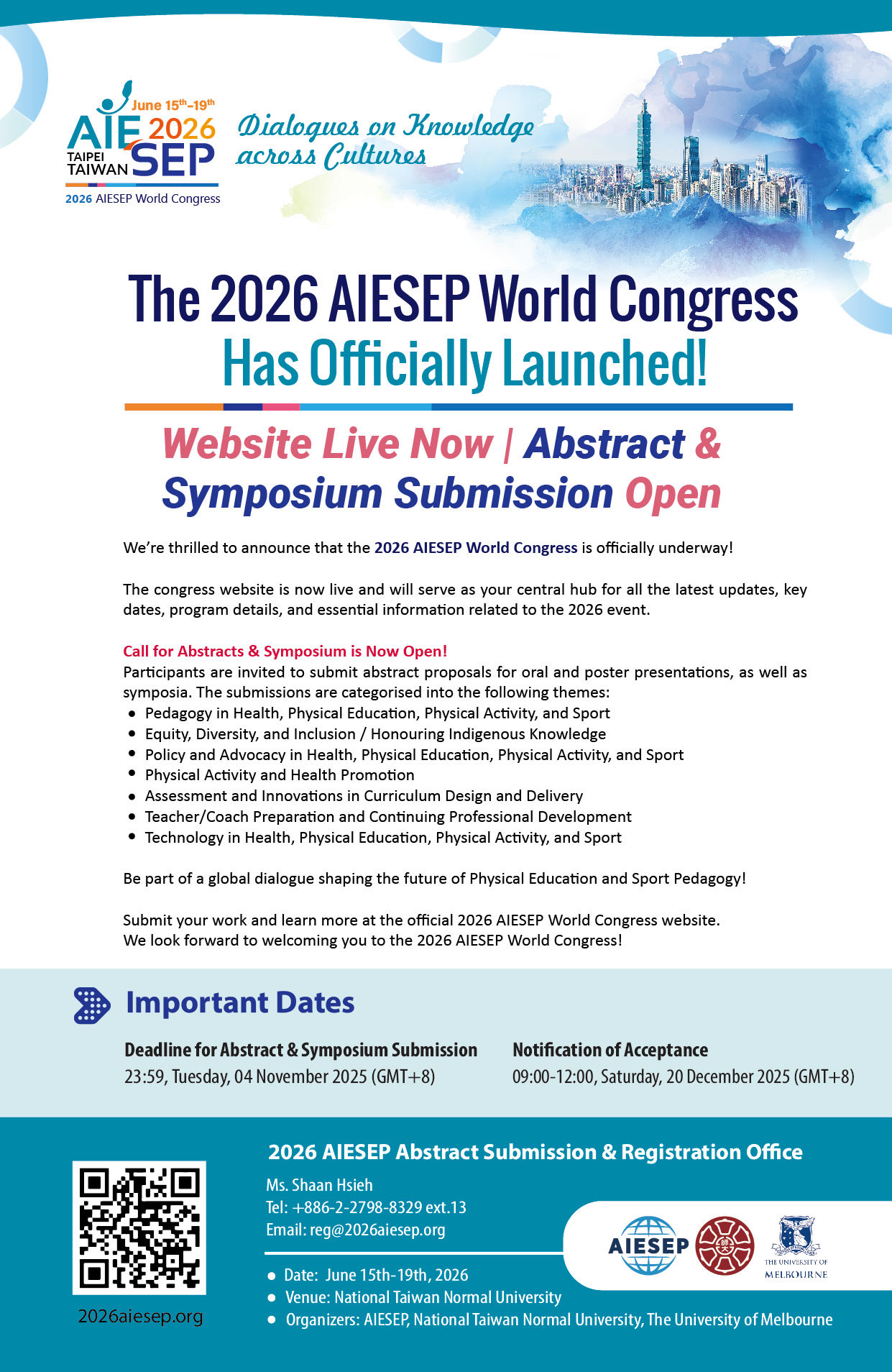 AIESEP에서 주관하는 2026 AIESEP International Conference 개최 건에 대해 안내드립니다.