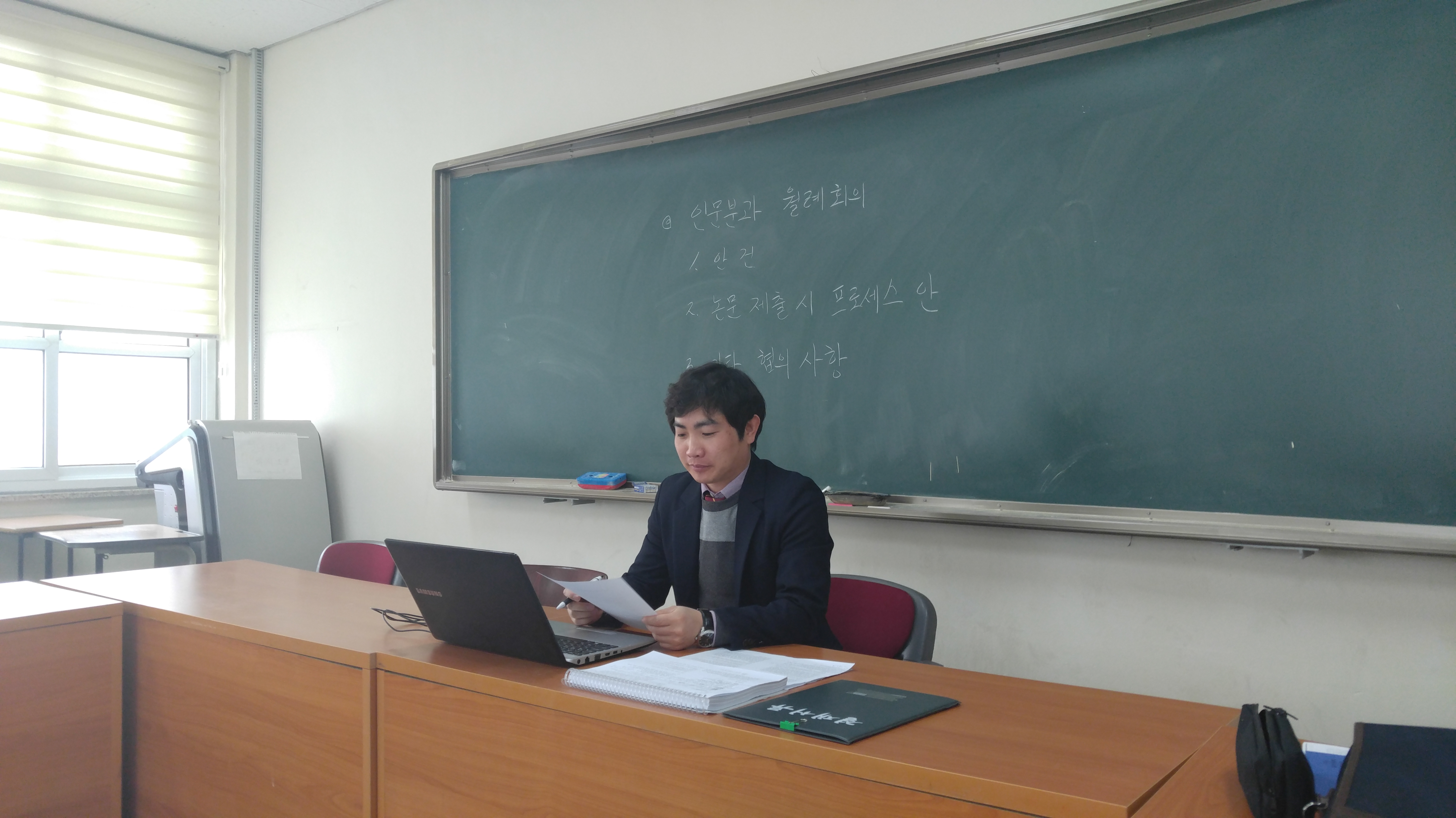 금일 공주대학교 사범대학 309호에서 1차 월례회를 가졌습니다. 이번 회의에서는 상반기 학술대회에 대한 준비와 논문 윤리 규정 준수에 관한 사항에 대해 토의하였습니다.