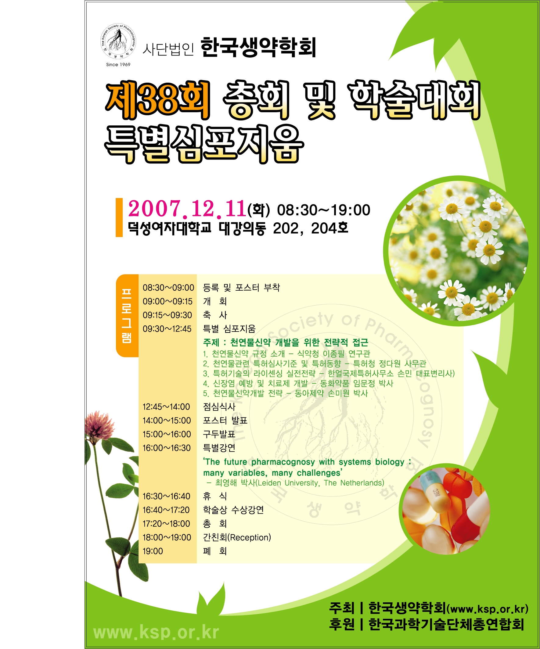 포스터-12월11일 생약학회 총회및 학술대회,특별심포 포스터